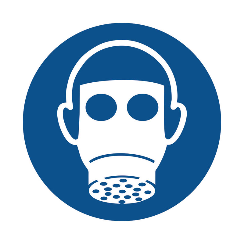 Наклейка «Одягнути засіб захисту органів дихання» 10 на 10 см
