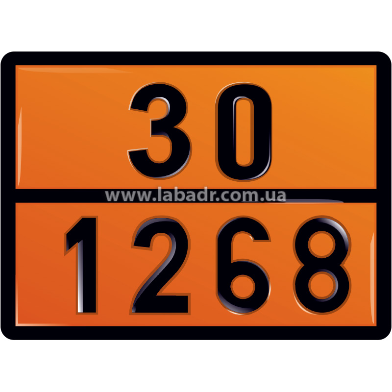 Табличка АДР оранжевого кольору (30 1268) для перевезення дистилятів нафти групи упакування ІІІ